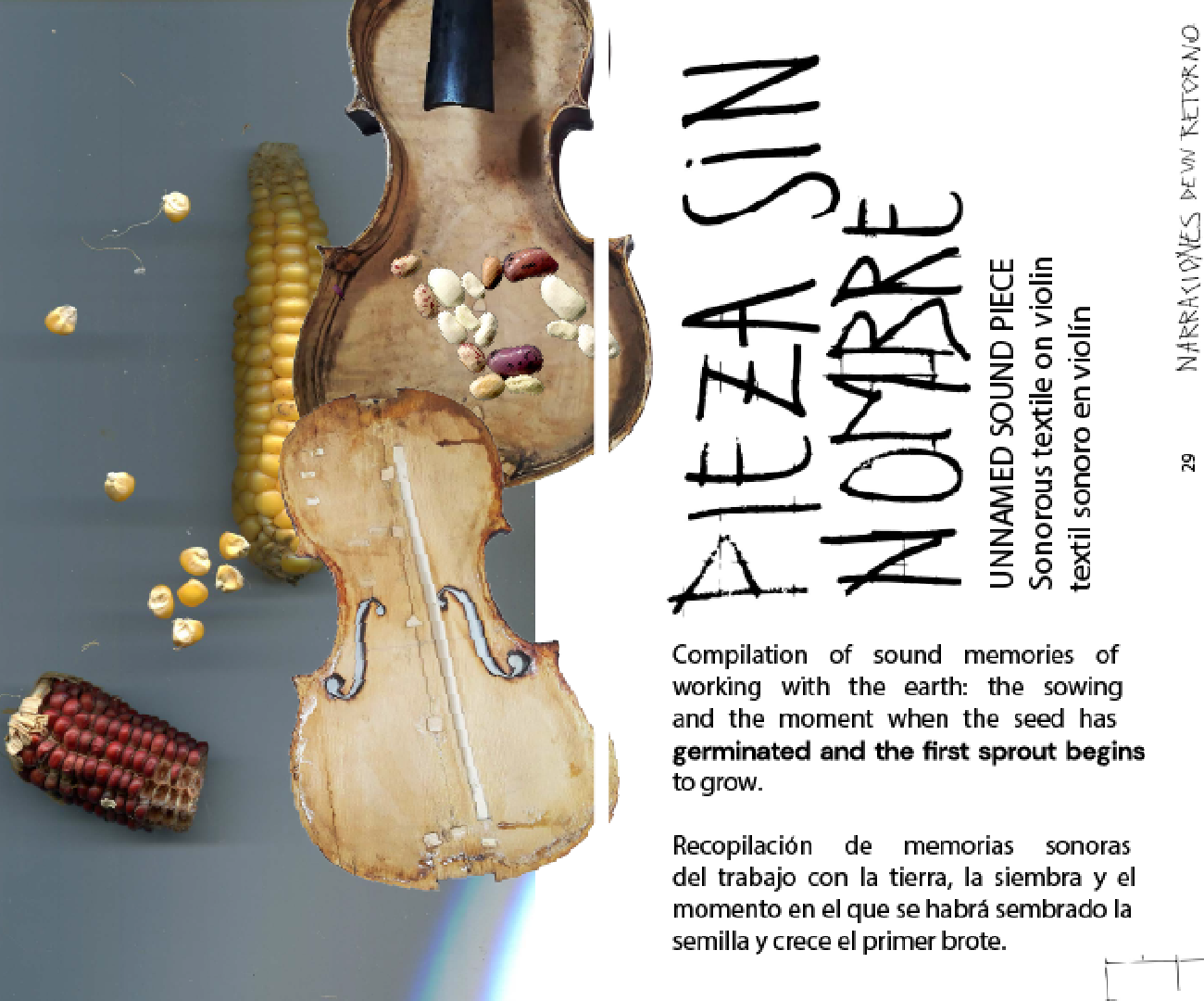 This work addresses topics such as the drought in my lof located in Chomio; the experience of growing up in the split space between the countryside and the city of Padre las Casas; my family's relationship with carpentry and with enforced Catholicism; the prohibition to make music with the txompe; poetics and practices critical of the violin’s hegemony imposed by the academy; and the return to the territory after having lived far away on another continent.